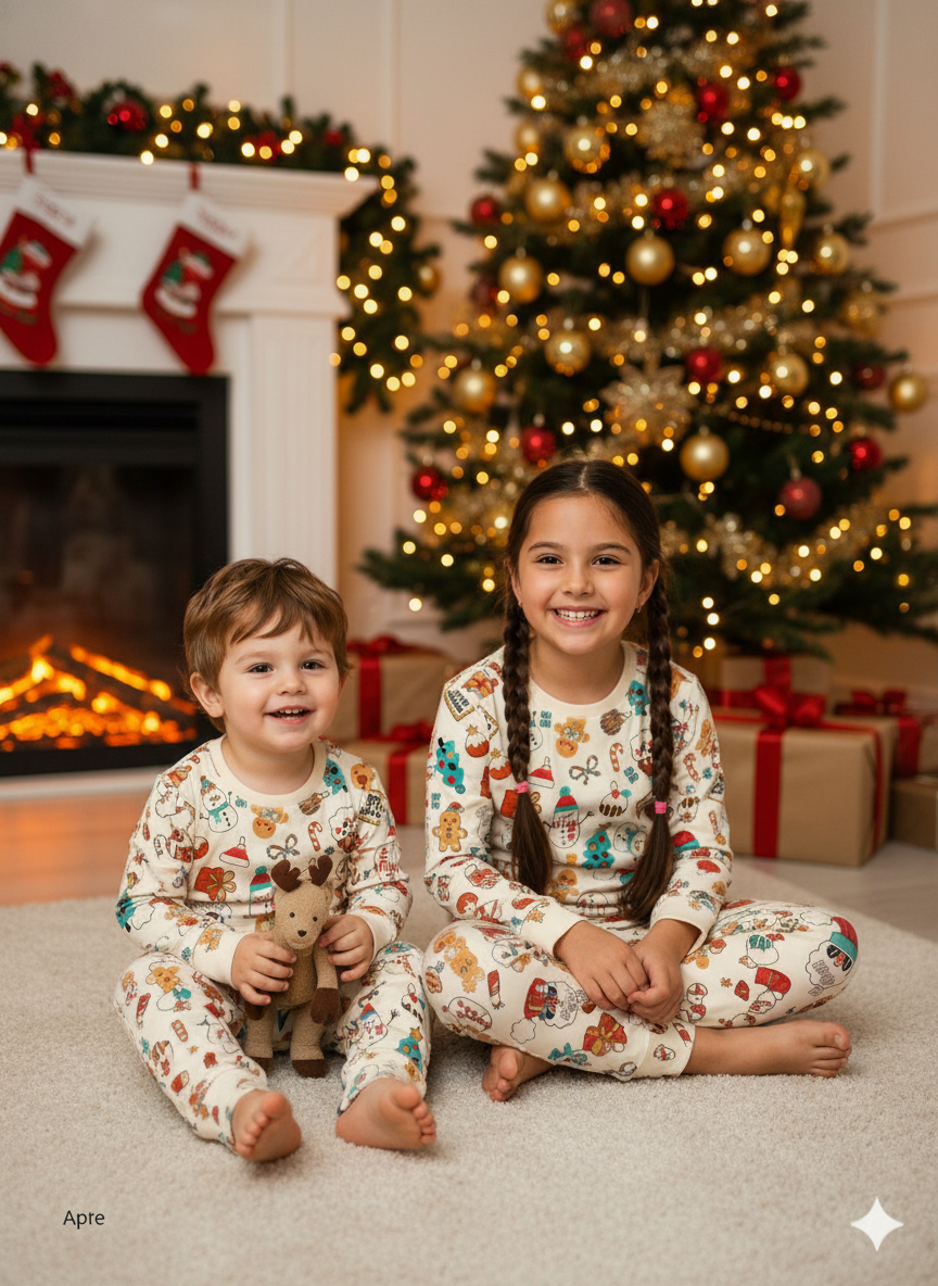 Nuestra pijama “La Villa de Santa” está hecha en piel durazno, una tela ultrasuave, calientita y delicada con la piel de los peques ❤️